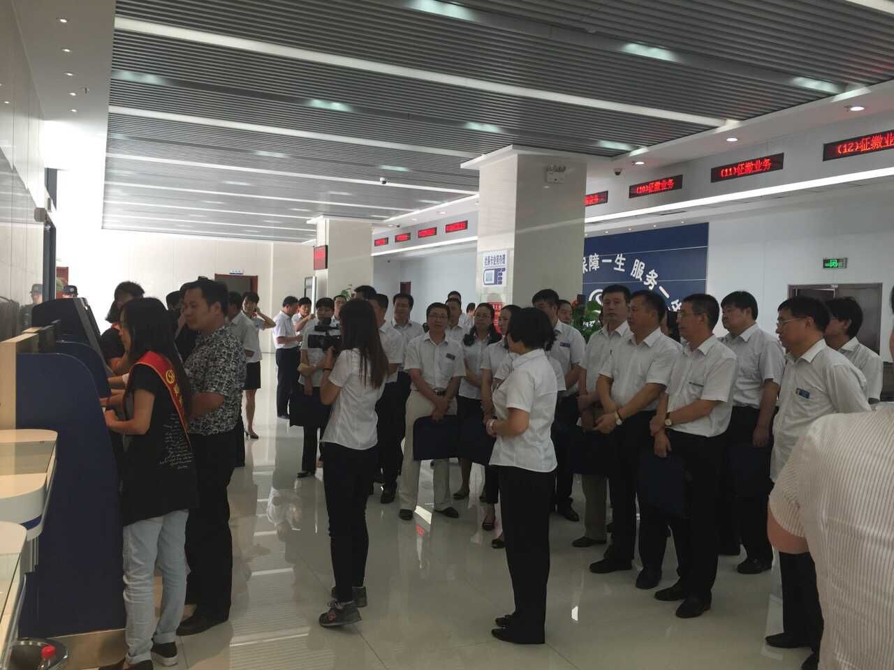 下圖為河南省各直管縣到鄭州社保局鄭東新區分局參觀學習,国产蜜桃AV在线免费看工作人員正在為在場的各位社保局領導講解自助領卡設備的操作流程。