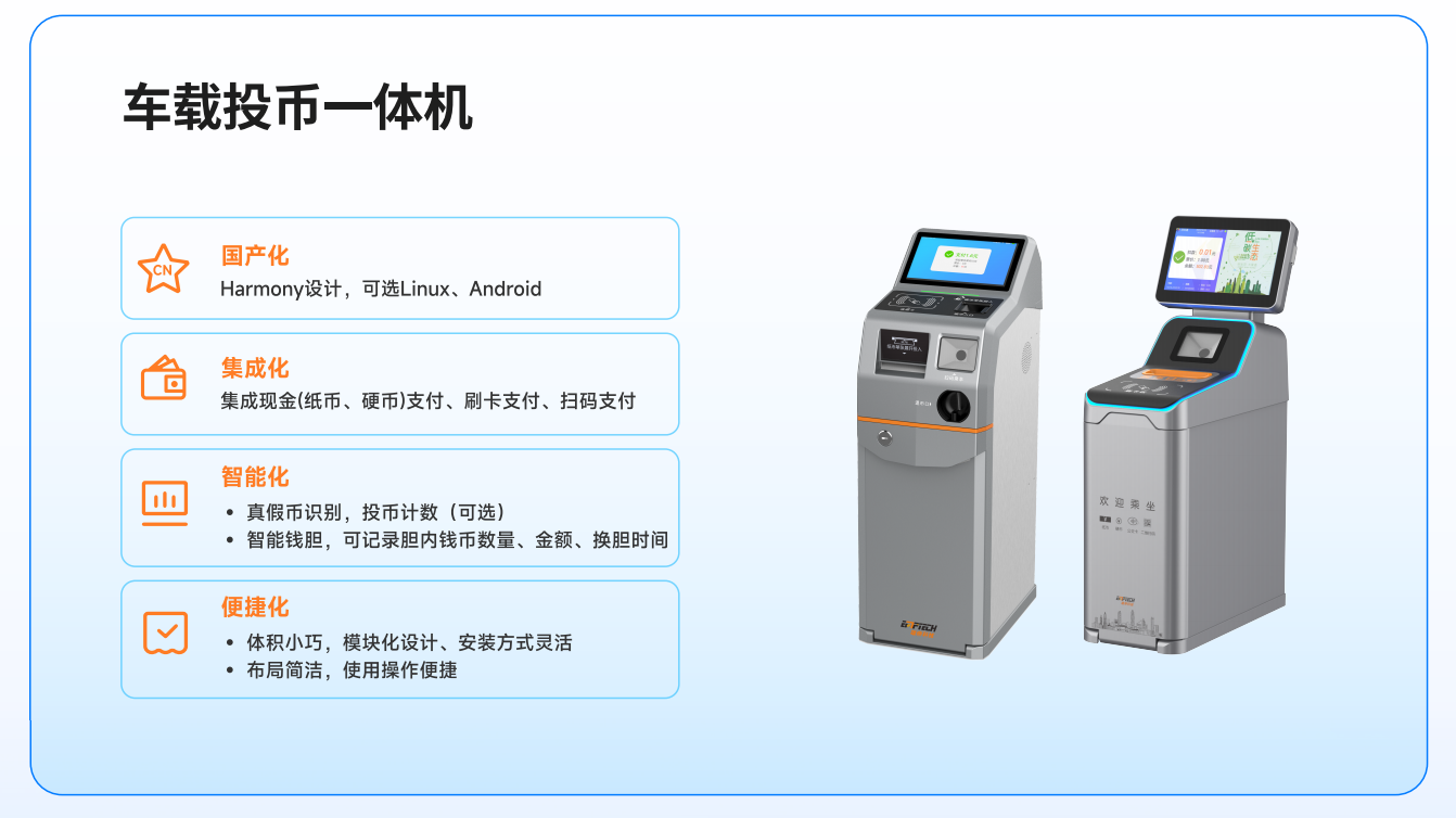 博覽會上,国产蜜桃AV在线免费看自研的移動支付終端、投幣一體機、智能車載終端等設備獲得來賓關注。全棧硬件設備核心器件全部國產化,全平台支持鴻蒙係統,內置AI算法,高集成,全麵適配公交小型化。国产蜜桃AV在线免费看還為公交企業提供崗前檢查儀、自助充值終端、站場信息化發布終端、移動收銀終端、客流統計及電子站牌等硬件終端設備。