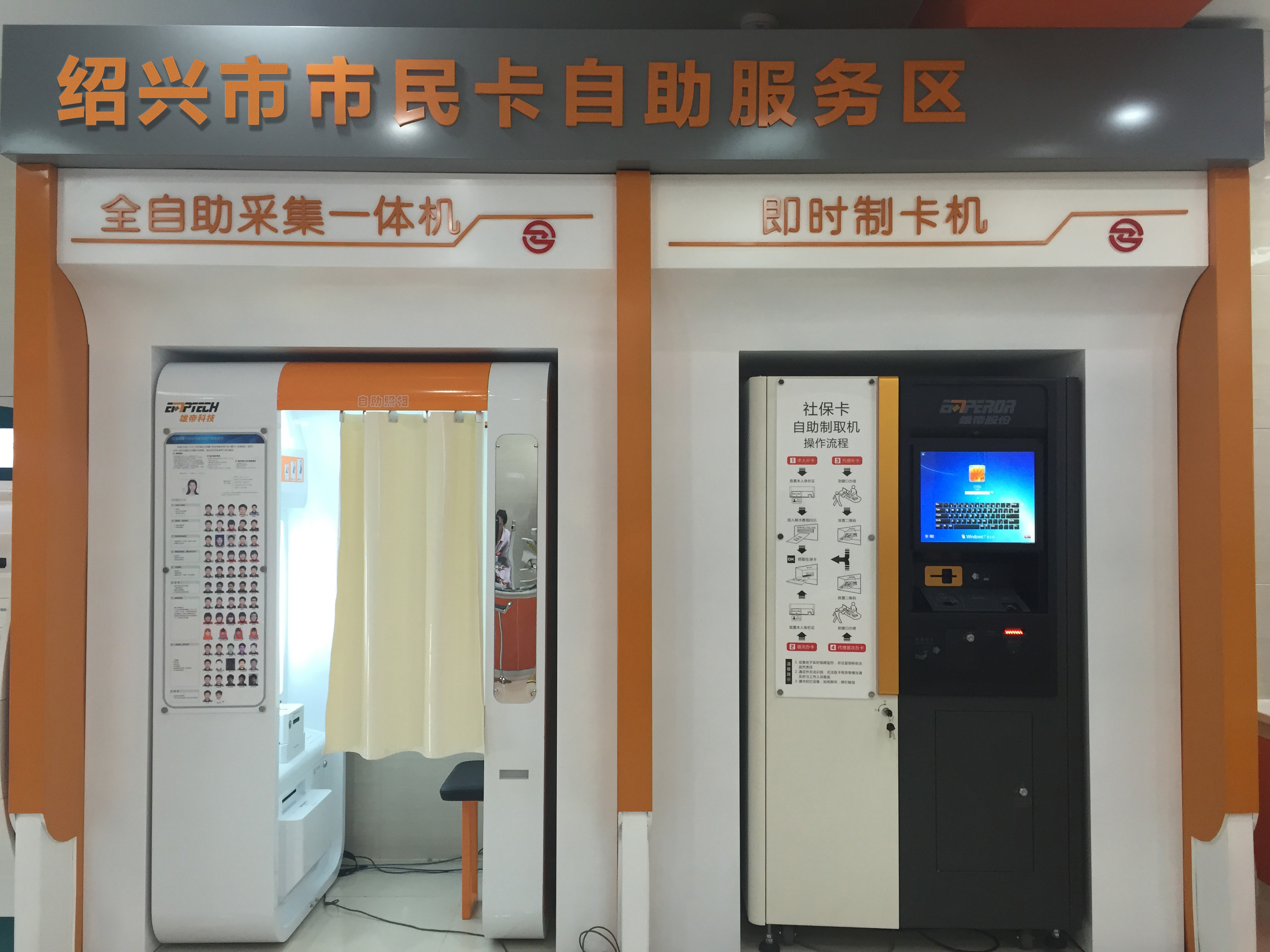 自助服務區設有自助采集一體機和即時製卡機。市民可在自助采集一體機進行免費自助拍照、指紋采集、二代身份證等信息的采集,打印社會保障市民卡申請表,免去排隊填寫申請表之苦。即時製卡機可實現新辦卡即時製卡、補換卡的製發、社會保障市民卡領卡、數據上報等多項功能。