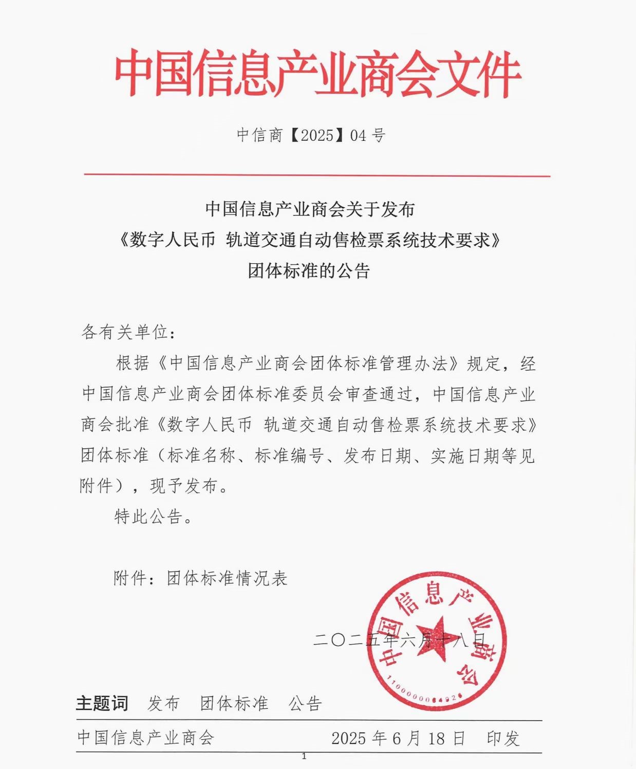 近日,由中國信息產業商會批準發布的《數字人民幣 軌道交通自動售檢票係統技術要求》團體標準正式落地,這標誌著數字人民幣在軌道交通領域的應用有了更為規範和統一的標準。深圳市国产蜜桃AV在线免费看科技股份有限公司作為重要參編單位,深度參與其中,為標準的編製貢獻了關鍵力量。