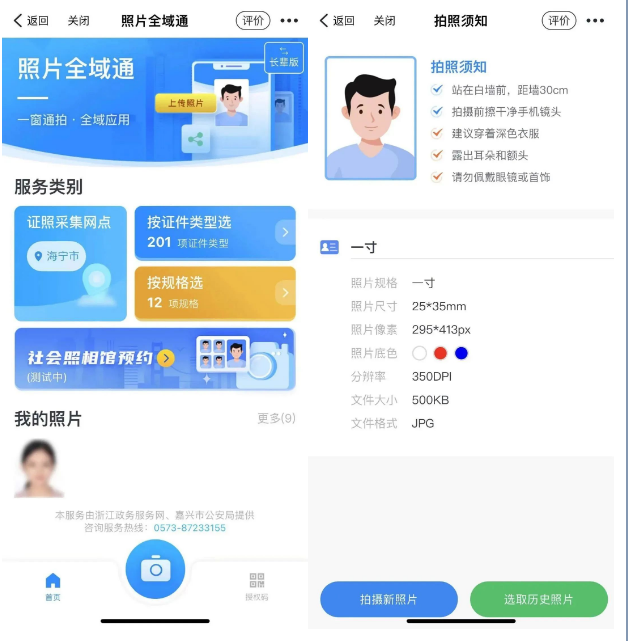 除可通過服務網點自助拍照設備采集照片外,群眾還可通過自己的手機在“浙裏辦”、支付寶搜索“照片全域通”,完成證件照的自拍、上傳。