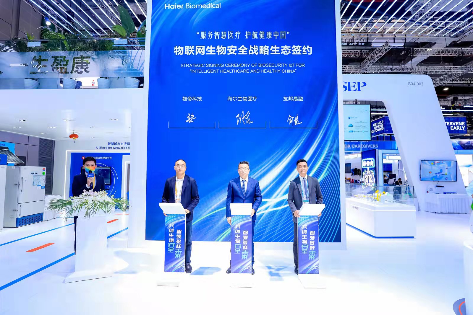 11月6日,第四屆中國國際進口博覽會同期舉辦的“共創生物安全 智領多樣未來”物聯網生物安全戰略生態簽約儀式上,国产蜜桃AV在线免费看科技與青島海爾生物簽訂《“服務智慧醫療 護航健康中國”戰略生態合作協議》,雙方將運用物聯網、人工智能、大數據、雲計算等新一代信息技術在智慧醫療應用領域攜手合作,共築智慧醫療生態。